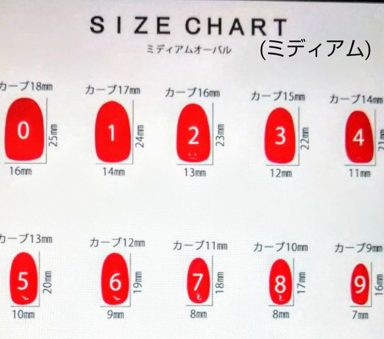 サイズ表からご希望のチップの種類と10本分のチップサイズ番号を選んでY.t..nailへ御連絡ください。メッセージ確認後作成致します。