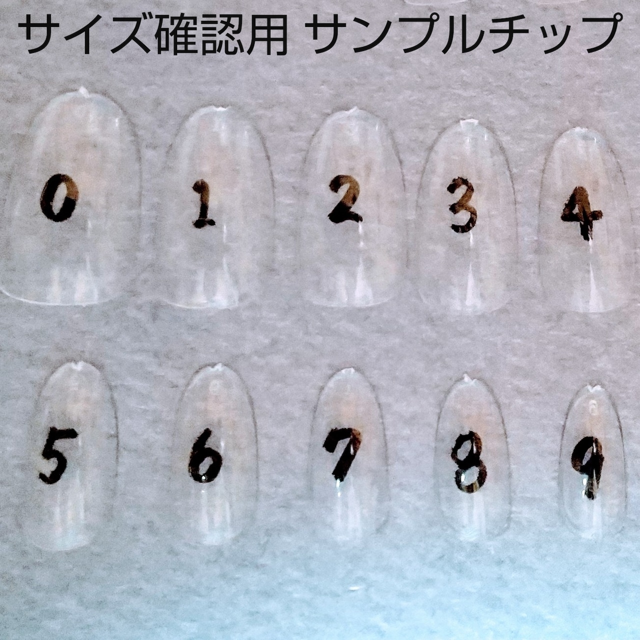 サンプルチップはご自身の爪にそのまま当ててもらい、サイズが合うチップを確認する事が出来ますのでお勧めしております。サイズがぴったりではない場合は大きめをお選び下さい。